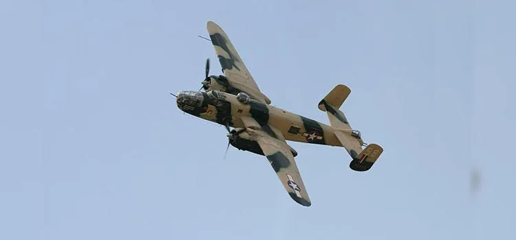 B-25 Mitchell ของอเมริกาเหนือเป็นเครื่องบินทิ้งระเบิดเครื่องยนต์คู่ที่ผลิตโดย North American Aviation ถูกใช้อย่างแพร่หลายในสงครามโลกครั้งที่สอง มันเป็นเครื่องบินอเนกประสงค์ที่สุดลำหนึ่งที่ใช้ในสงครามและยังติดอาวุธหนักที่สุดด้วย Mitchells เป็นที่รู้จักในเรื่องความสามารถในการตีและอยู่ในอากาศได้ มิทเชลผู้มีชื่อเสียงคนหนึ่งมีชื่อเล่นว่า "แพทช์" บินไปกว่า 300 ภารกิจและสะสมรูกระสุนมากกว่า 400 รู