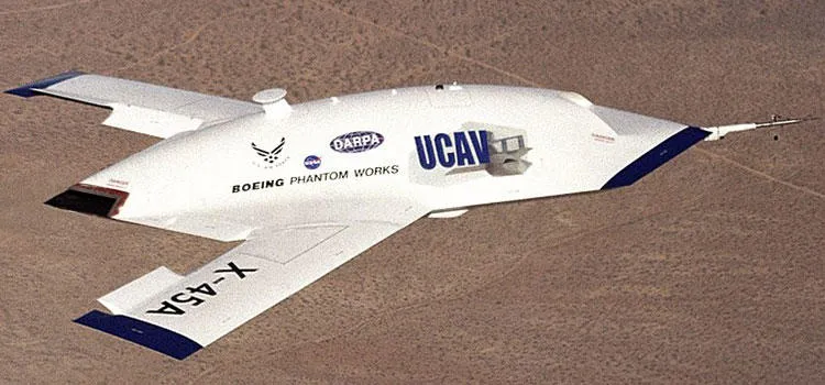 Boeing X-45 เป็นอีกหนึ่งโดรนใหม่ที่พัฒนาโดย Phantom Works ของ Boeing ซึ่งเป็นส่วนหนึ่งของโครงการ J-UCAS ของ DARPA มีปีกแลมด้าแบบกวาดช่องระบายอากาศขนาดเล็กมากและพื้นผิวควบคุมแนวตั้งเป็นศูนย์ มีขนาดใกล้เคียงกับ Nighthawk แต่ซ่อนตัวได้ดีกว่ามีระยะที่ดีกว่าและมีประสิทธิภาพเทียบเท่ากันทั้งหมดนี้ไม่มีนักบิน