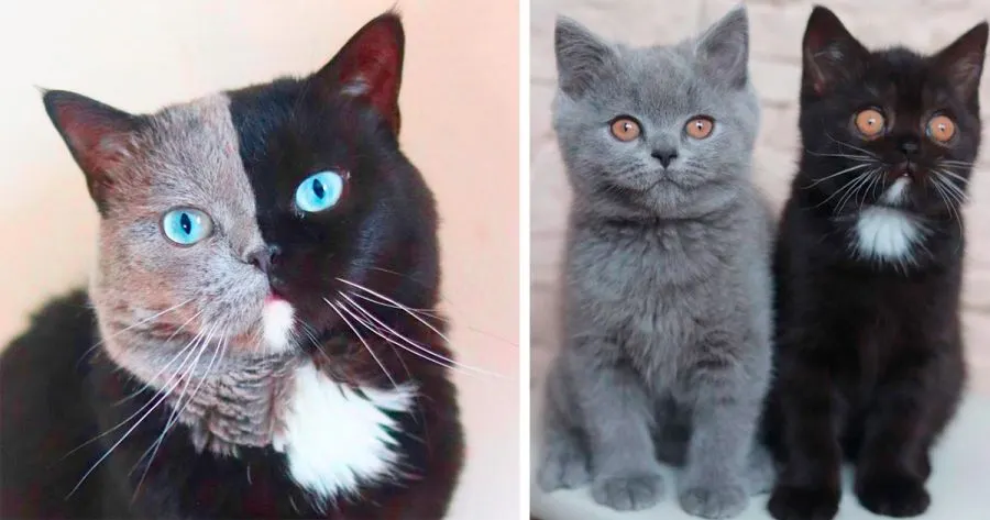 แมวที่มี 'สองหน้า' กลายเป็นพ่อของลูกแมว 2 ตัวที่มีแต่ละสี
