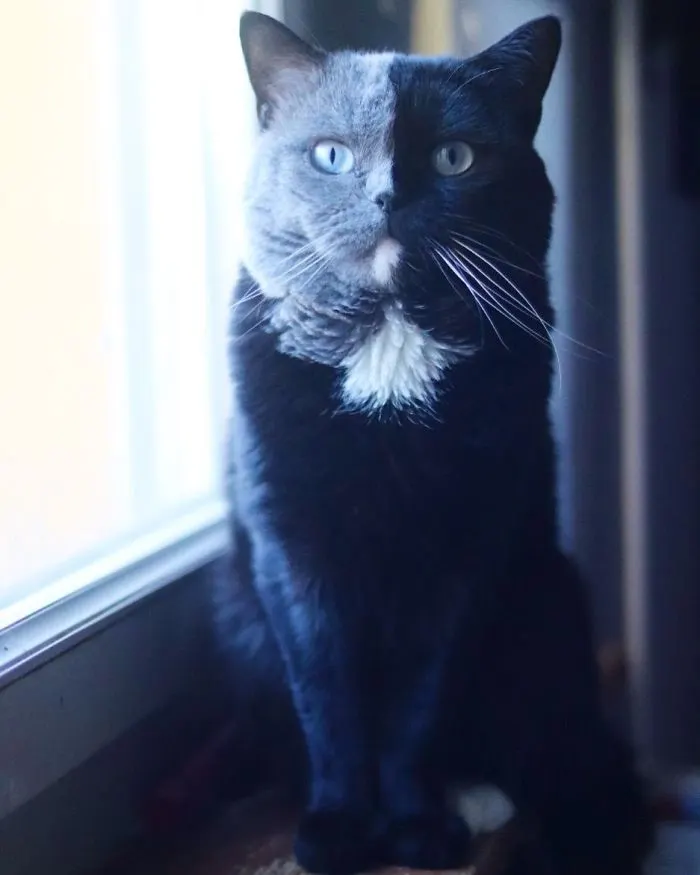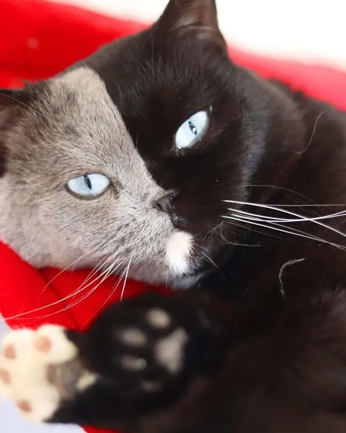 แมวตาสีฟ้าตัวนี้มีใบหน้าแบ่งออกเป็น 2 สีอย่างชัดเจน: สีเทาและสีดำ Stephanie Jimenez เจ้าของมันกล่าวว่า“ ตอนที่ Narnia เกิดมา ฉันรู้สึกประหลาดใจมาก ฉันรู้ทันทีว่าเธอยอดเยี่ยมมาก”