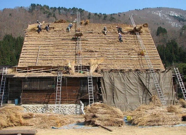รูปแบบสถาปัตยกรรมแบบดั้งเดิมมีชีวิตอยู่ได้นานหลายร้อยปีเนื่องจากสถานที่ตั้งที่เงียบสงบของภูมิภาคในตอนบนของแม่น้ำShōgawaซึ่งเป็นภูมิภาคที่ดึงดูดความสนใจเพียงเล็กน้อยตั้งแต่ศตวรรษที่ 12 เมื่อผู้รอดชีวิตจากตระกูล Taira (Heike) ซึ่งเป็น ตระกูล Minamoto (Genji) ถูกกวาดล้างอย่างแท้จริงในการสู้รบที่โหดร้ายในปี 1185 วิถีชีวิตและวัฒนธรรมของหมู่บ้านยังคงไม่เปลี่ยนแปลงในทางปฏิบัติเป็นเวลาหลายปีหลังจากที่ส่วนใหญ่ของประเทศมีการปรับปรุงให้ทันสมัย บ้านหลายหลังที่นี่มีอายุมากกว่า 300 ปีอย่างง่ายดายและที่เก่าแก่ที่สุดกล่าวกันว่าสร้างขึ้นเมื่อ 400 ปีก่อน