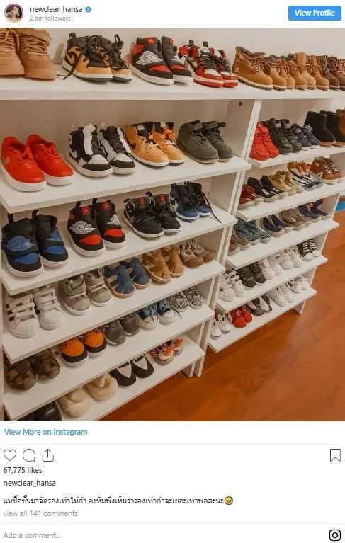 “แม่ซื้อชั้นมาจัดรองเท้าให้ก้า อะหืมพึ่งเห็นว่ารองเท้าก้าจะเยอะเท่าพ่อละนะ” งานนี้หลังจากที่ชาวเน็ตได้เห็นจึงไม่พลาดที่จะเข้ามาคอมเมนท์กันสนั่นไปทั้งไอจีเลย