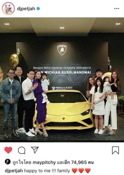 ล่าสุดทำเอาแฟนๆแห่คอมเม้นต์สนั่น เมื่อดีเจเพชรจ้าก็ให้ของขวัญตัวเองอีกแล้วด้วยการถอยรถหรู Lamborghini คันสีเหลือง ซึ่งราคาก็อยู่ที่ประมาณ 20-25 ล้านบาทเลยทีเดียว และเมื่อถึงฤกษ์วันไปรับรถก็มีสมาชิกในครอบครัวไปกันพร้อมหน้า งานนี้ พ่อเพชรจ้า ก็ได้จัดแลมโบกินี่คันน้อยให้น้องไทก้าของเราด้วย จะเป็นยังไงไปดูกันเลยค่ะ