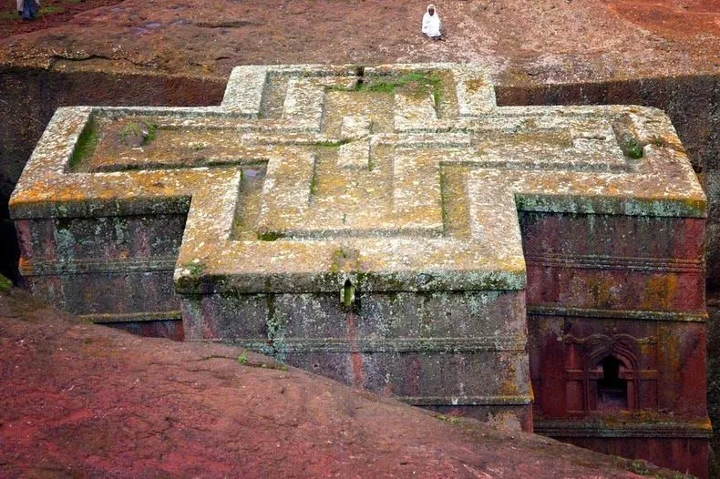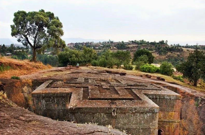 ในเมือง Lalibela ที่ห่างไกลซึ่งตั้งอยู่บนภูเขาใจกลางเอธิโอเปียห่างจากแอดดิสอาบาบาประมาณ 645 กม. เป็นโบสถ์เสาหินยุคกลางสิบเอ็ดแห่งที่แกะสลักจากหิน คริสตจักรเหล่านี้ได้รับมอบหมายจากกษัตริย์ Lalibela ซึ่งพยายามสร้างกรุงเยรูซาเล็มใหม่ในศตวรรษที่ 12 หลังจากการยึดครองของชาวมุสลิมได้หยุดการแสวงบุญของชาวคริสต์ไปยังดินแดนศักดิ์สิทธิ์