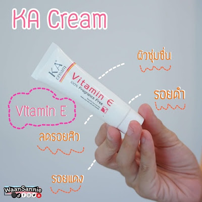 นั่นก็คือ KA CREAM เป็นครีมที่มีส่วนผสมของวิตามิน อี ซึ่งวิตามิน อีเป็นที่รู้จักกันอย่างดี
