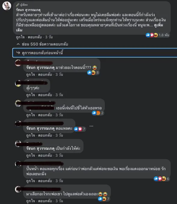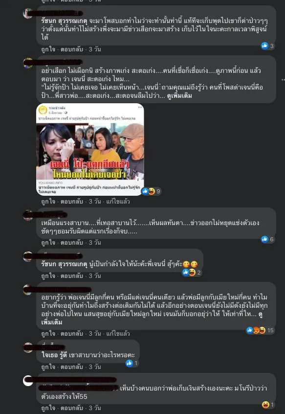 ถล่ม!ด่ากันกลางเฟช?หลังเจนนี่ ตอบคำถามเรื่องพ่อแบบนี้? สาวเจนนี่ ได้มีการแชร์ภาพที่ตนเองได้ออกไปเดินสายทำบุญ เพื่อความเป็นสิริมงคลในชีวิตที่จังหวัดพระนครศรีอยุธยา พร้อมข้อความว่า “จบทริป ถวายสังฆทาน 9 วัด สาธุ” แต่ก็ไม่วายที่จะมีชาวเน็ตเข้าไปตามแซะถามถึงคุณพ่อของสาวเจนนี่ด้วยว่าลืมท่านไปแล้วหรือยัง? ซึ่งเจ้าตัวก็ได้เข้ามาตอบกลับว่า “สำหรับหลายๆท่านที่เข้ามาต่อว่าเรื่องพ่อนะคะ หนูไม่เคยลืมพ่อค่ะ และตอนนี้ก็กำลังเร่ง ปรับปรุงและต่อเติมบ้านให้พ่ออยู่นะคะ เสร็จเมื่อไหร่จะแจ้งทุกท่านให้ทราบนะคะ ส่วนเรื่องเงินก็มีช่วยเหลืออยู่ตลอดค่ะ แล้วแต่โอกาส ขอบคุณหลายๆคนที่เป็นห่วงเรื่องนี้ หนูจะพยายามทำทุกอย่างให้ดีที่สุดค่ะ” มีคนเข้ามาคอมเม้นต์กว่า3พันคนจ้า!!!