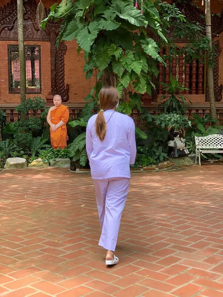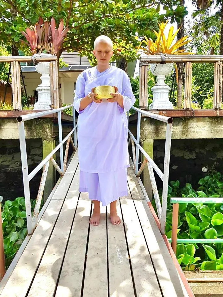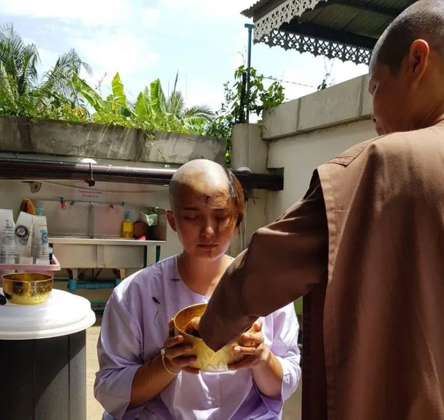ดิ๊งค์ กมลชนก สมบัติเจริญ ลูกสาวคนสวยของนักร้องลูกทุ่งชื่อดัง สุรชัย สมบัติเจริญ ได้นุ่งชุดขาวห่มขาว ปลงผมบวชชี เข้าปฏิบัติธรรมในวันคล้ายวันเกิด อายุครบ 26 ปี