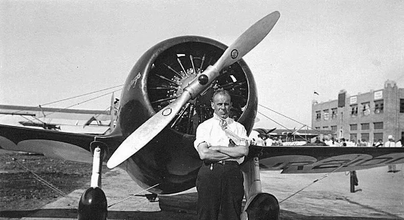รัสเซลบอร์ดแมนก่อนการบินทดสอบครั้งแรกของ Gee Bee Model R1 ต่อมาบอร์ดแมนถูกฆ่าตายในระหว่างการแข่งขันเบ็นดิกซ์โทรฟี่ปี 1933 เมื่อ R1 ของเขาจนตรอกและพัง