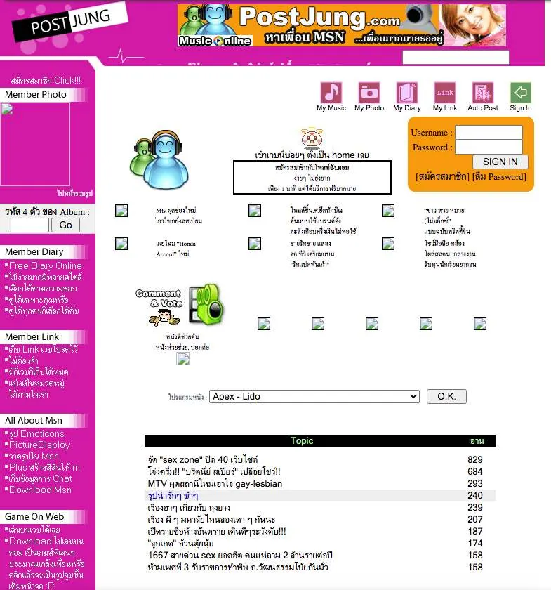 และนี่ก็คือยุคแรกๆ ของโพสจัง ถ้าดูปัจจุบัน หน้าตาเปลี่ยนไปเยอะมาก ภาพบางภาพไม่ขึ้นอาจเพราะระบบพยายาามจะขุดแล้วแต่ก็ไม่มี แต่บางภาพอาจจะยังมีให้เห็นอยู่ ดังนั้นลองไปเล่นดูนะครับ ไม่ว่าเวปไหนที่เคยปิดตัวไปแล้ว เราก็สามารถเข้าไปดู และยังเซฟบันทึกไว้เป็นไฟล์ได้ด้วย เผื่อมีเพื่อนๆ เคยทำเวปไซด์ไว้ แล้วลืมจนเวปหมดอายุ หรือลืมต่ออายุ อยากจะเห็นผลงานตัวเอง แค่จำชื่อเวปได้ ก็ค้นหาได้เลยครับ
