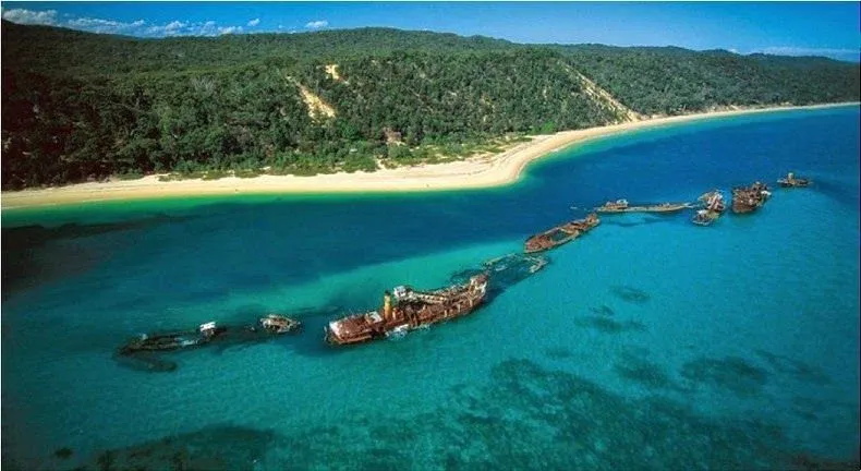 ซากเรืออับปางเกิดขึ้นในปี 2506 เมื่อเจ้าของเรือกลุ่มหนึ่งร้องขอให้สร้างท่าเรือที่มนุษย์สร้างขึ้นซึ่งอยู่ห่างจากเกาะเพื่อการทอดสมอที่ปลอดภัย อันเป็นผลมาจากการวิ่งเต้นคำขอของพวกเขาจึงได้รับอนุญาตและเรือสำเภาประมาณ 15 ลำถูกฝังอยู่ในสันทรายนอกเกาะมอร์ตัน เรือที่ปลดประจำการ ได้แก่ เรือเก่าเรือขุดและเรือท้องแบนโดยเรือ Maryborough เป็นผู้นำในฐานะเรือลำแรกที่จมลงในน่านน้ำ โครงสร้างขนาดใหญ่ได้สร้างกำแพงกั้นซึ่งทำหน้าที่เป็นสถานที่ศักดิ์สิทธิ์เพื่อปกป้องเรือลำเล็ก ๆ ยิ่งไปกว่านั้นซากเรือยังเป็นสถานที่ที่เหมาะสำหรับการดำน้ำลึกและดำน้ำตื้นอีกด้วย ปัจจุบันเป็นสถานที่ท่องเที่ยวยอดนิยมของเกาะ Moreton
