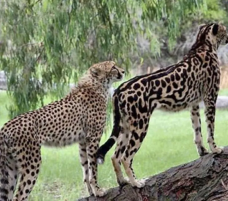 13. ราชาเสือชีต้า (ทางขวา) การกลายพันธุ์ของสีที่หายากมีเพียง 6 กรณีเท่านั้นที่เคยบันทึกไว้ในป่า