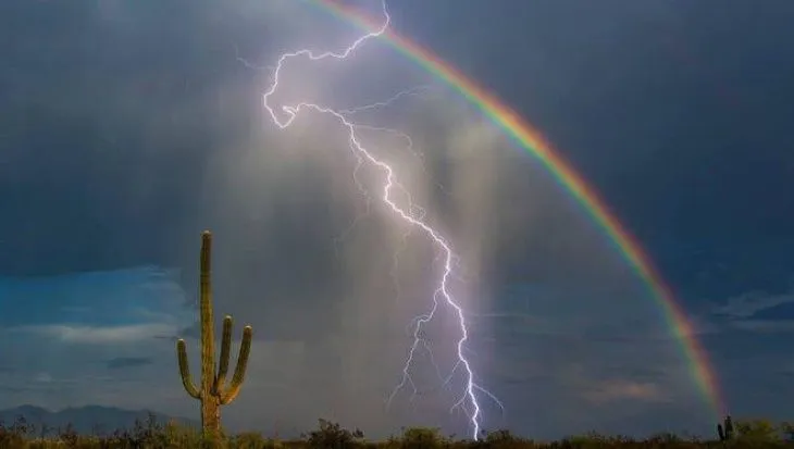 9. สายรุ้งและสายฟ้าเคียงข้างกันในแอริโซนา