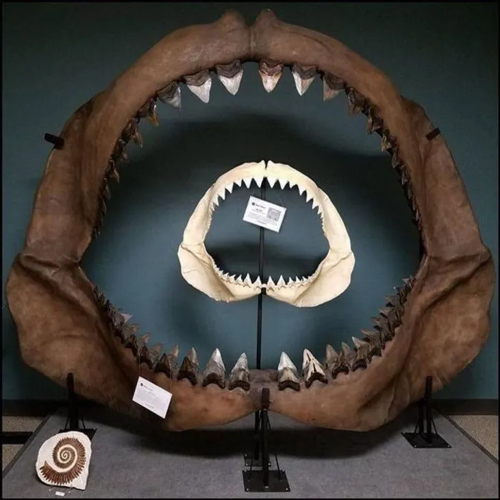 1. ขากรรไกรของฉลามขาวยักษ์ในขากรรไกรของ megalodon