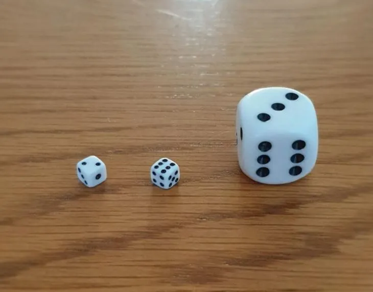 9. ลูกเต๋าขนาดเล็กถัดจากลูกเต๋าคู่ปกติ