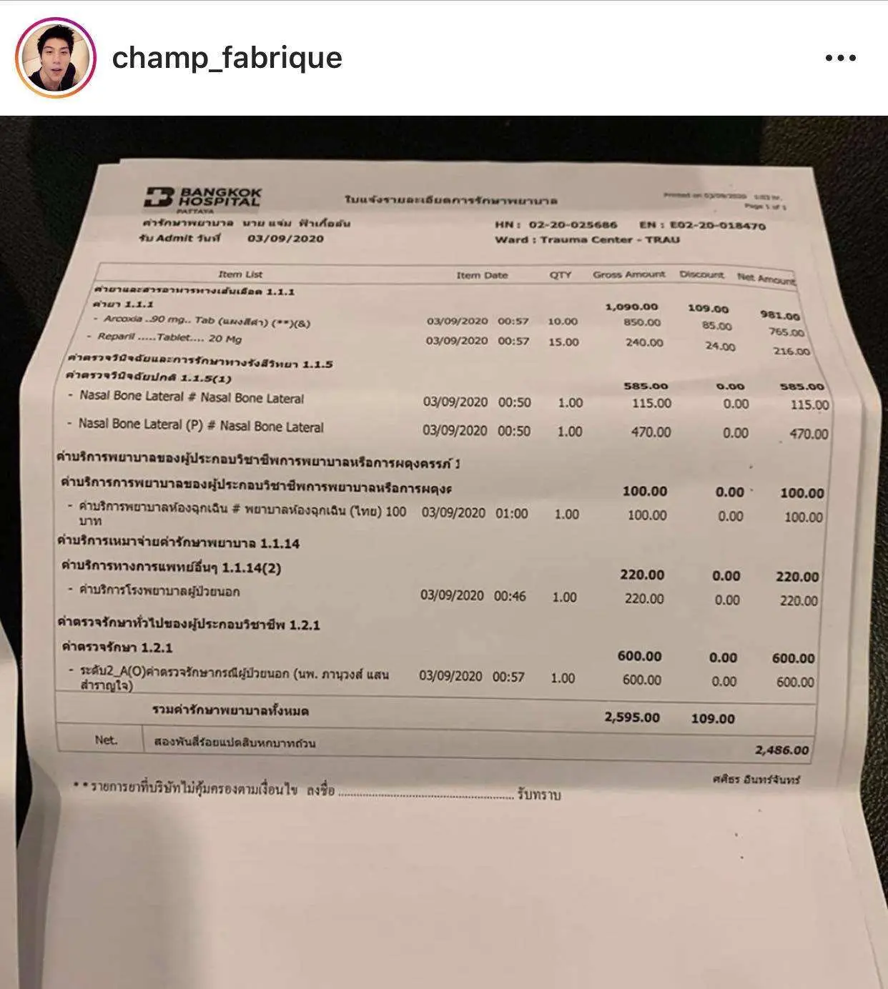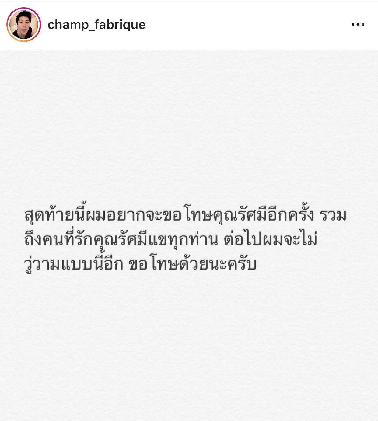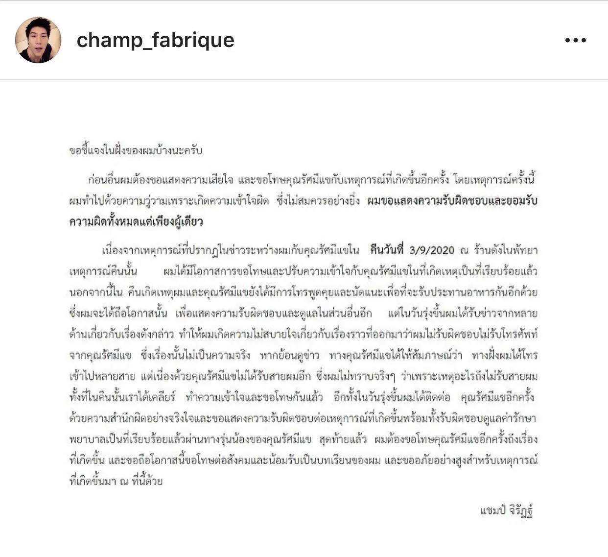 “ไฮโซแชมป์” โพสต์ขอโทษ “รัศมีแข” เคลียร์จบ! ทำไปเพราะเข้าใจผิดด้วยความวู่วาม จ่ายค่ารักษาฯ 2 พันกว่า