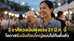 3 ราศีดวงเงินพุ่งแรง 21 มี.ค. นี้ โอกาสรับเงินก้อนใหญ่แบบไม่ทันตั้งตัว