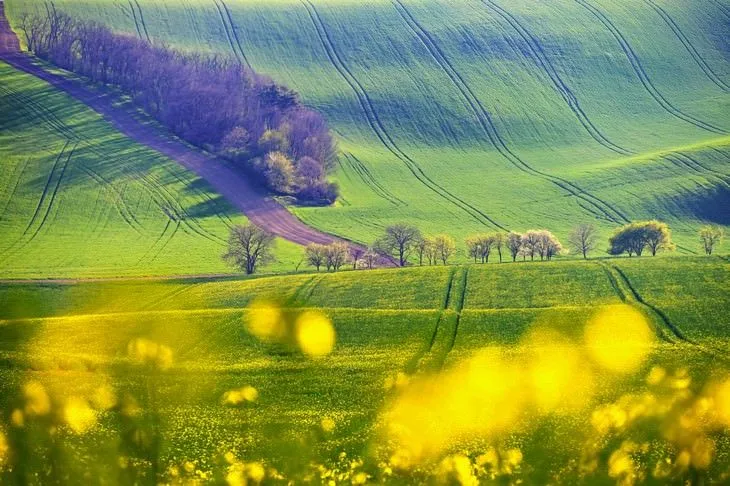 ทุ่งหญ้าในโมราเวียมักเรียกกันว่า 'Small Tuscany' มีชื่อเสียงในเรื่องสีสันสดใส โมราเวียเป็นพื้นที่เกษตรกรรมที่ใหญ่ที่สุดในสาธารณรัฐเช็กโดยเฉพาะอย่างยิ่งมีชื่อเสียงในด้านไร่องุ่นและเนินเขาที่กลายเป็นทุ่งกว้าง หากคุณอยู่ในสาธารณรัฐเช็กตลอดช่วงฤดูใบไม้ผลิและฤดูร้อนขับรถผ่านบริเวณนี้และดื่มด่ำกับความงามทั้งหมดนี้