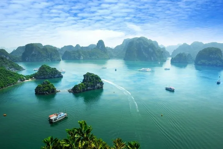 ค่อนข้างชัดเจนว่าทำไมอ่าวฮาลองในเวียดนามจึงได้รับการขึ้นทะเบียนเป็นมรดกโลกโดยองค์การยูเนสโก อ่าวสีเขียวเทอร์ควอยซ์ล้อมรอบด้วยเวิ้งน้ำและเกาะต่างๆกว่า 1,600 เกาะสร้างภูมิทัศน์ธรรมชาติที่โดดเด่นและเป็นเอกลักษณ์อย่างแท้จริง ลักษณะเด่นส่วนใหญ่ของอ่าวคือเสาหินปูนสีเขียวสูง หากคุณต้องการดูวิดีโอความละเอียดสูงของฮาลองเบย์