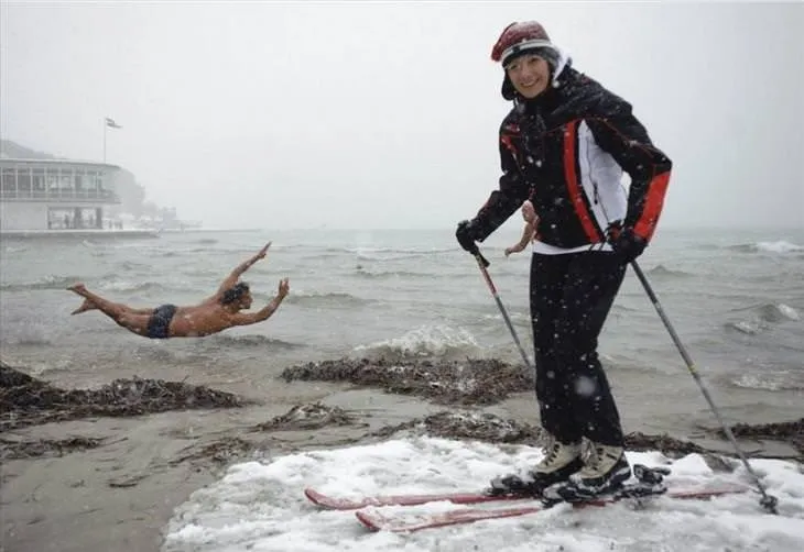 การเริ่มต้นฤดูการอาบน้ำในฤดูหนาวมาถึง
