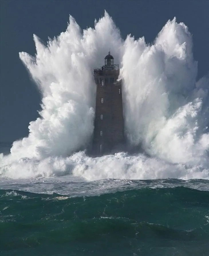 ประภาคารแห่งหนึ่งในหมู่เกาะแฟโรตกเป็นเหยื่อของคลื่น