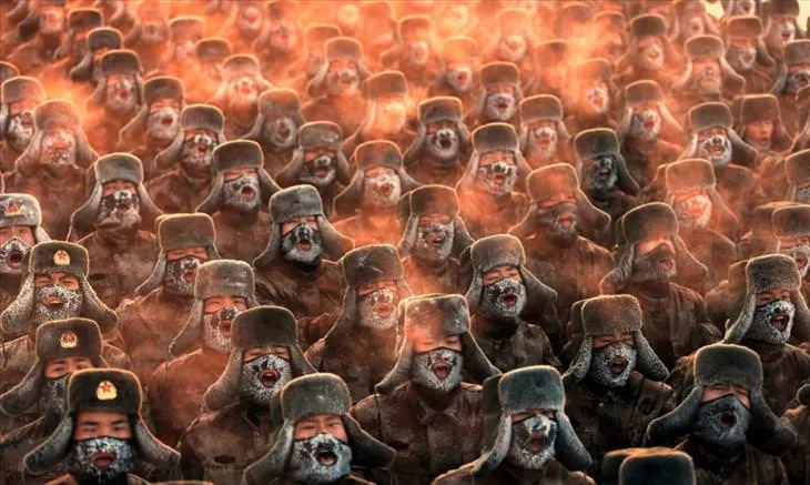 กองทหารของจีนทำการฝึกซ้อมเวลารุ่งสาง