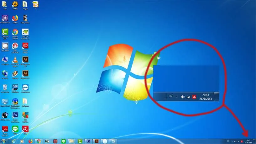 1.มองไปที่มุมขวาล่างของจอคอมพิวเตอร์ จะเห็นเวลา