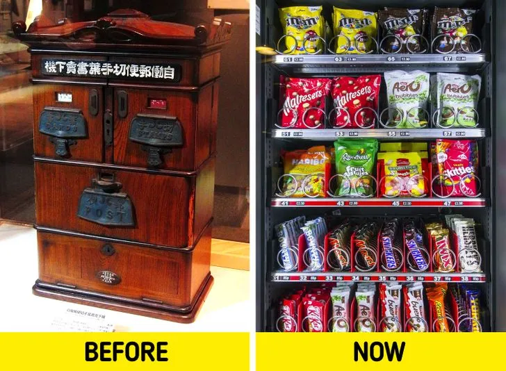 ตู้หยอดเหรียญที่เก่าแก่ที่สุด เป็นผลงานของ Hero of Alexandria วิศวกรและนักคณิตศาสตร์ในสมัยโรมันอียิปต์ศตวรรษแรก เครื่องนี้ใช้เหรียญในการขายน้ำ จากนั้นโมเดลที่ทันสมัยได้ปรากฏขึ้นเมื่อต้นทศวรรษที่ 1880 พวกเขาขายโปสการ์ดซองจดหมายและแสตมป์ ภาพด้านซ้ายคือโมเดลปี 1904