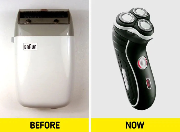 มีดโกนไฟฟ้าเครื่องแรกคิดค้นโดย John F. O'Rourke ในปี 1898 แต่ไม่ได้ผลิตจำนวนมากจนถึงปี 1937 ภาพด้านซ้ายแสดงมีดโกนSixtant SM2รุ่นปี 1963 จาก Braun