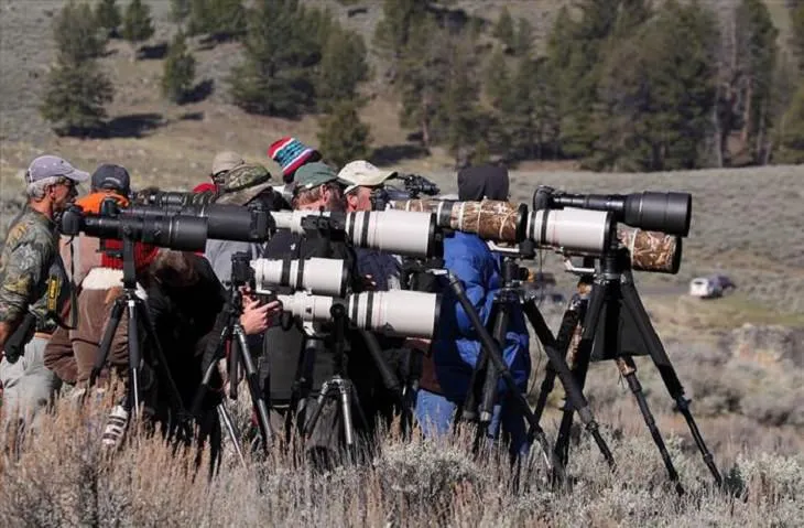สัตว์เลี้ยงลูกด้วยนมตัวที่ 68 ในเยลโลว์สโตนเป็นช่างภาพธรรมชาติ กลุ่มนี้รอตั้งแต่รุ่งสางเพื่อให้แบดเจอร์ออกมา การถ่ายภาพธรรมชาติบางคนบอกว่าเป็นโชค 5% ทักษะ 5% และความอดทน 90%