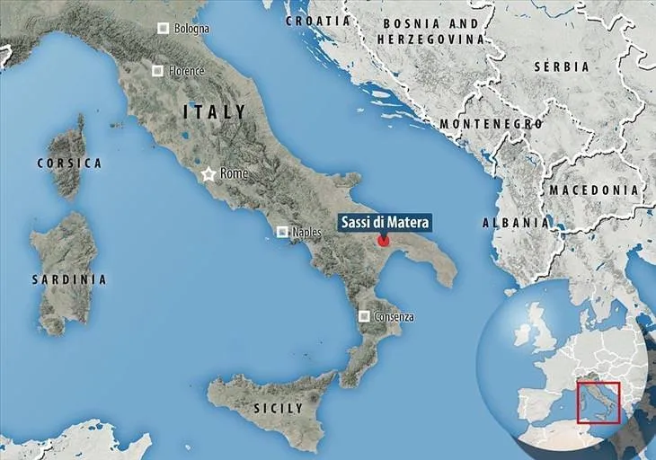 ตั้งอยู่ทางตอนใต้ของอิตาลีมีเมืองโบราณชื่อ Matera ซึ่งมีชื่อเสียงในเรื่องบ้านถ้ำที่เรียกว่า 'sassi' รูปแกะสลักบนหน้าผาของหุบเหวหิน เชื่อกันว่าสร้างขึ้นโดยสิ่งที่ครั้งหนึ่งเคยเป็นแม่น้ำสายใหญ่ กล่าวกันว่าที่อยู่อาศัยเป็นหนึ่งในการตั้งถิ่นฐานของมนุษย์กลุ่มแรกในอิตาลีย้อนหลังไปถึงยุค Paleolithic เมื่อ 9,000 ปีก่อน ตั้งแต่นั้นเป็นต้นมาจนถึงช่วงทศวรรษ 1950 เป็นต้นมาถ้ำก็มีคนอาศัยอยู่