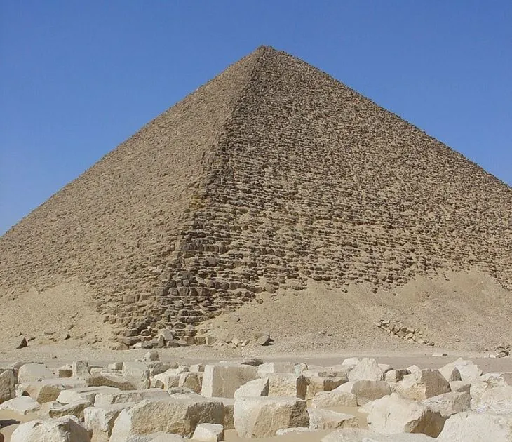 วิหารอียิปต์แห่งนี้ตั้งอยู่ในไคโรและเป็นวัดที่ใหญ่ที่สุดในสามแห่งที่พบในสุสานหลวงดาห์ชูร์ หลังจากพีระมิดพี่ชายในกิซ่าพีระมิดคูฟูและพีระมิดคาเฟรพีระมิดแดงหรือที่เรียกว่าพีระมิดเหนือเป็นปิรามิดที่ใหญ่เป็นอันดับ 3 ในอียิปต์ มีรายงานว่าสร้างขึ้นในรัชสมัยของ Sneferu ประมาณ 2590 ปีก่อนคริสตกาลและใช้เวลาสร้างประมาณ 10 ถึง 20 ปี สร้างจากหินปูนสีแดงทั้งหมด (มีส่วนช่วยทั้งสีสันและชื่อของมัน) เชื่อกันว่าปิรามิดนี้เป็นความพยายามครั้งแรกที่ประสบความสำเร็จครั้งแรกของชาวอียิปต์โบราณในการสร้างพีระมิดด้านเรียบที่แท้จริง เดิมพีระมิดถูกเคลือบด้วยหินปูนทูราทำให้มีสีขาว อย่างไรก็ตามหินปูน Tura ส่วนใหญ่ถูกนำไปสร้างอาคารอื่นเผยให้เห็นหินปูนสีแดงด้านล่าง