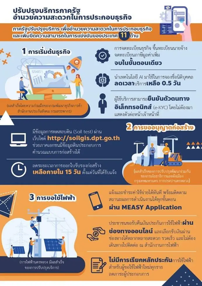 สำนักงาน ก.พ.ร. เดินหน้าผลักดันให้ภาครัฐปรับปรุงบริการในด้านต่างๆ อาทิ การเริ่มต้นธุรกิจ การขออนุญาตก่อสร้าง การขอใช้ไฟฟ้า เพื่ออำนวยความสะดวกในการประกอบธุรกิจและเพิ่มขีดความสามารถในการแข่งขันของประเทศ