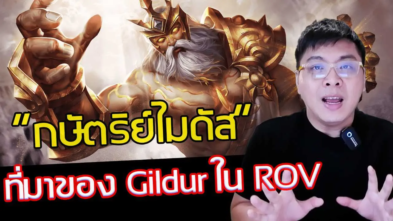 วันนี้หนึ่งจะพาไปดูที่มาของตัวละคร ROV ตัวหนึ่งนะครับ ฮีโร่ตัวนี้ อยู่กับเกม ROV มาตั้งแต่ยุคแรกเริ่ม เป็นฮีโร่ในตำแหน่งตัวแท็งค์ มีจุดเด่นในเรื่องของการควบคุมสถานะ และความว่องไว นั่นก็คือตัว Gildur นั่นเอง ตัว Gildur ซึ่งบางคนก็เรียกว่า ลุงทอง มาพร้อมกับ skill ultimate ชื่อ Debauchery ที่เรียกวงแหวนทองคำออกมา เป็นสกิลไม้ตายเรียกได้ว่าโคตรโกงที่สุดของเกม เพราะมันสามารถสตั๊นหมู่นานมาก เป็นวงกว้างแถมด้วยดาเมจเวทเริ่มต้นอีกวินาทีละ 100 ทั้งหมด 3 วินาที แค่นี้ก็พอจะทำให้ศัตรูในวงสตั๊นเงิบแล้ว หากมีเพื่อน คอยทำดาเมจอยู่รอบนอกอีก ก็เรียกว่าพลิกโอกาสได้เลยทีเดียว เพื่อนๆ คงสงสัยว่าตัว Gildur นี่มีที่มาจากไหน ทำไมเรียกว่าลุงทอง และทำให้ skill ถึงเป็น stun ตัวต่างๆได้ ถ้าพร้อมแล้ว เราไปดูกันเลยนะครับ