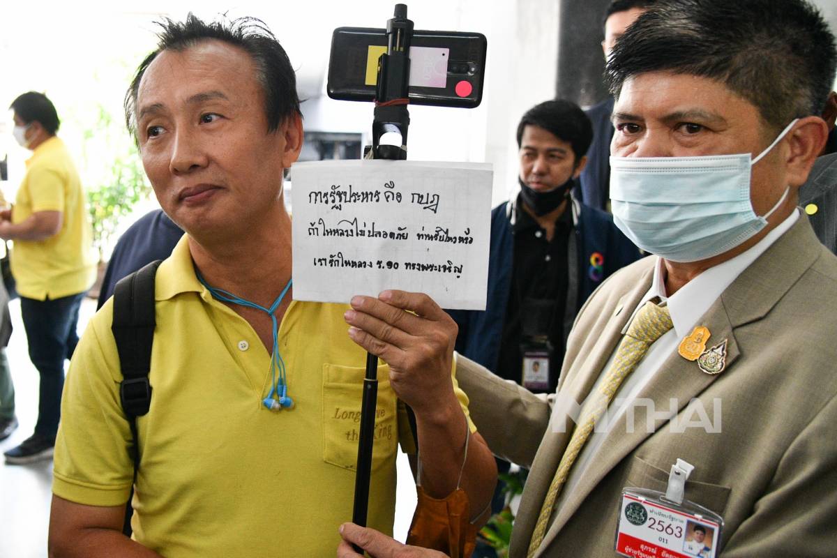 แอบถือป้ายอยู่นะจ๊ะ “การรัฐประหารคือกบฏ”