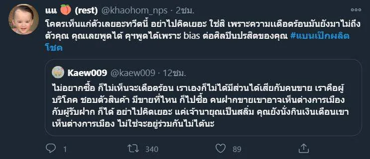โคตรเห็นแก่ตัวเลยอะทวีตนี้ อย่าไปคิดเยอะ ใช่สิ เพราะความเเดือดร้อนมันยังมาไม่ถึงตัวคุณ คุณเลยพูดได้ คุฯพูดได้เพราะ bias ต่อศิลปินปรสิตของคุณ #แบนเป๊กผลิตโชค