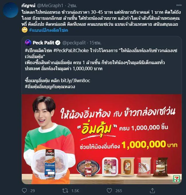 #เป๊กผลิตโชค #PeckPaLitChoke ใาร่วใโครงการ "ให้น้องอิ่มท้องกับข้าวกล่องเซเว่นอิ่มคุ้ม"