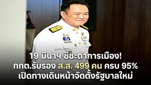 19 มีนาฯ ชี้ชะตาการเมือง! กกต.รับรอง ส.ส. 499 คน ครบ 95% เปิดทางเดินหน้าจัดตั้งรัฐบาลใหม่