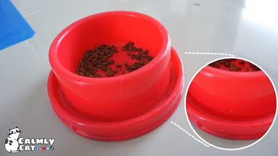 อย่างแรกคือจานข้าวแมวควรมีที่ใส่น้ำหล่อเลี้ยงค่ะ ไว้กันมดขึ้นจานข้าว