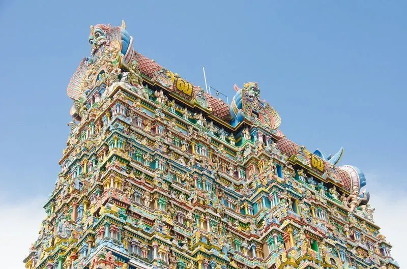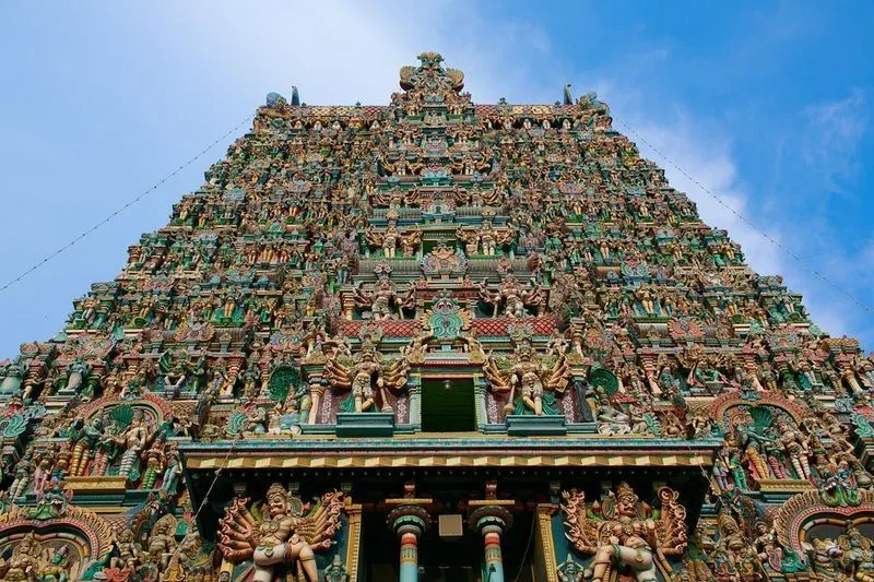 วัด Meenakshi อันเป็นสัญลักษณ์ตั้งอยู่ในเมืองโบราณ Madurai ทางตอนใต้ของรัฐทมิฬนาฑูของอินเดีย วัด Meenakshi ตั้งอยู่ใจกลางเมืองอายุ 2,500 ปีสร้างขึ้นเพื่ออุทิศให้กับเทพธิดา Meenakshi ซึ่งเป็นอวตารของเทพธิดาในศาสนาฮินดู Parvati ซึ่งเป็นมเหสีของพระศิวะ เป็นจุดสนใจของแหล่งท่องเที่ยวทั้งในอินเดียและต่างประเทศมายาวนานรวมทั้งเป็นหนึ่งในสถานที่สำคัญที่สุดของการแสวงบุญของชาวฮินดู สำหรับชาวมทุไรวัดเป็นศูนย์กลางชีวิตทางวัฒนธรรมและศาสนาของพวกเขา