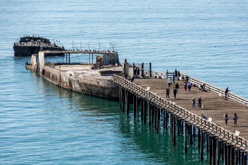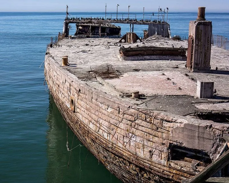 เรือบรรทุกน้ำมัน SS Palo Alto ถูกลากไปยัง Seacliff State Beach ใน Aptos รัฐแคลิฟอร์เนียและสร้างเป็นสวนสนุกพร้อมสิ่งอำนวยความสะดวกรวมถึงฟลอร์เต้นรำสระว่ายน้ำและคาเฟ่ สวนสาธารณะปิดในอีกสองปีต่อมาเมื่อ บริษัท ล้มละลาย วันนี้มันยังเป็นซากปรักหักพังอีกแห่งบนชายหาดตัวเรือของมันหักผ่านส่วนกลาง