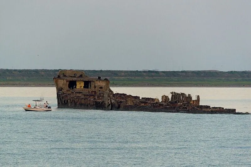 ซากเรือ USS Selma ที่อ่าวกัลเวสตันบนชายฝั่งอ่าวเท็กซัส เครดิตภาพ: Galveston.com/Flickr