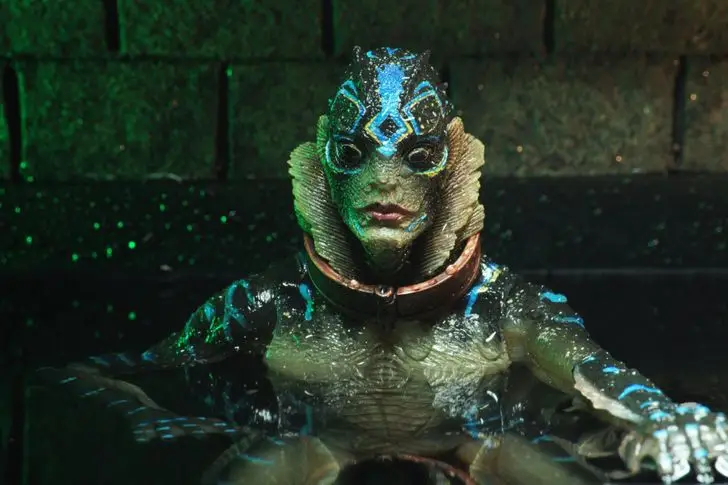 คอลเลกชันบทบาทของ Doug Jones เต็มไปด้วยสัตว์ประหลาดนานาชนิด นั่นเป็นเหตุผลว่าทำไมจึงเป็นเรื่องยากที่จะทำให้เขาประหลาดใจด้วยการแต่งหน้า แต่ถึงกระนั้นดั๊กก็จะจดจำผลงานของเขาในภาพยนตร์เรื่องThe Shape of Water ไปอีกนาน เพราะการถ่ายทำของนักแสดงจะเริ่มเร็วกว่าเพื่อนร่วมงาน 3 ชั่วโมงเพราะนั่นคือเวลาที่ใช้ไปกับการแต่งหน้า ในตอนแรกผู้ช่วย 4 คนจะดึงชุดลาเท็กซ์ขึ้นมาเหนือร่างกายของโจนส์จากนั้นพวกเขาก็สวมถุงมือที่มีเมมเบรนและในที่สุดก็ติดแผ่นรองคอไฟเบอร์กลาสและหมวกกันน็อคซึ่งสร้างกลไกควบคุมเหงือกแบบพิเศษ ให้เขา. นักแสดงสารภาพว่าเขารู้สึกหมดหนทางเพราะเขาไม่สามารถเปิดประตูได้ด้วยตัวเองและเขาก็ไม่สามารถหายใจทางปากได้