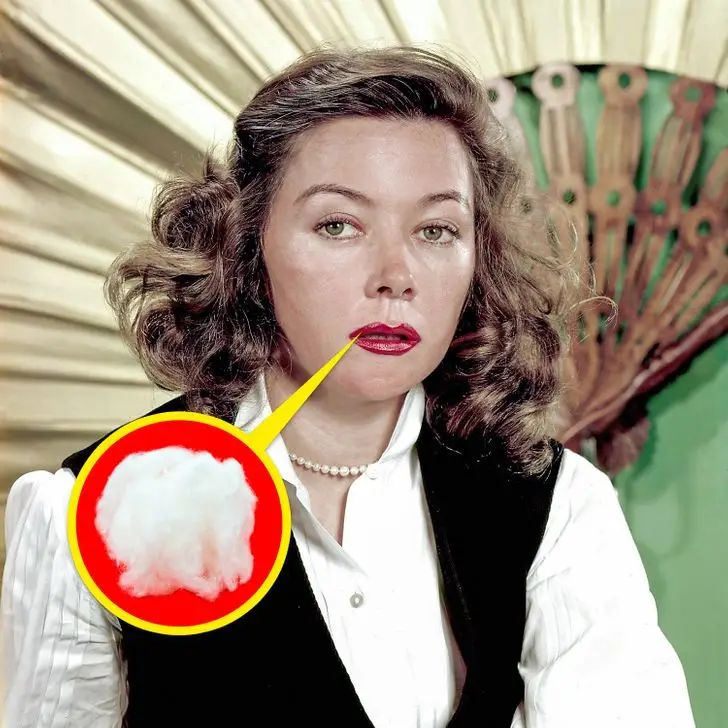 นักร้องฮอลลีวูดและผู้ชนะรางวัลออสการ์ Gloria Grahame รู้สึกอายที่ริมฝีปากบนของเธอเพราะเธอเชื่อว่ามันบางเกินไป เพื่อแก้ไขความไม่สมบูรณ์นี้นักแสดงหญิงสอดผ้าฝ้ายหรือผ้าชิ้นเล็กๆระหว่างฟันและริมฝีปากของเธอเพื่อให้ดูอวบอิ่มและน่าดึงดูดยิ่งขึ้น เคล็ดลับนี้ถูกพบในระหว่างฉากจูบโดยคู่หูของเธอ