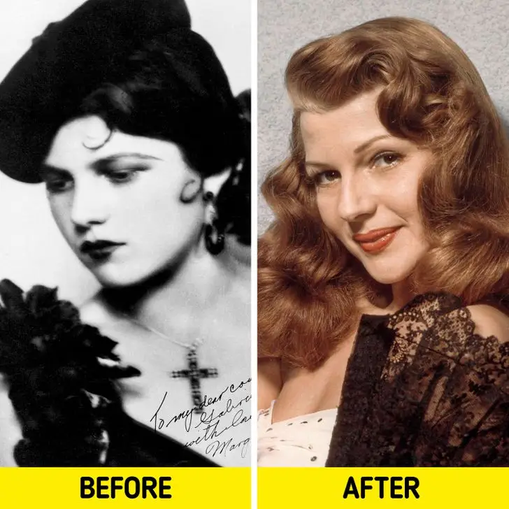 Rita Hayworth เป็นหนึ่งในนักแสดงหญิงชาวอเมริกันที่ได้รับความนิยมมากที่สุดในช่วงทศวรรษที่ 1940 เธอมีเชื้อสายสเปนและนั่นเป็นเหตุผลว่าทำไมเธอถึงเป็นสาวผมสีน้ำตาล เพื่อให้เป็นไปตามมาตรฐานความงามของฮอลลีวูดและมีบทบาทสำคัญมากขึ้นในภาพยนตร์เธอต้องย้อมผมให้เป็นสีแดงและทำการ อิเล็กโทรลิซิส ( วิธีการกำจัดขนแต่ละเส้นออกจากใบหน้าหรือร่างกายโดยใช้สารเคมีหรือพลังงานความร้อน) เพื่อดันเส้นผมและ ทำให้หน้าผากของเธอดูสูงขึ้น