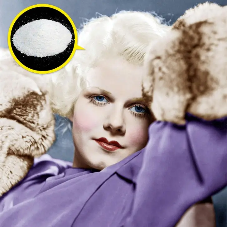 Jean Harlow เป็นคนที่ถือว่าเป็นสาวผมบลอนด์ทองคำขาวในอุดมคติก่อนที่ Marilyn Monroe จะปรากฏตัว นักแสดงหญิงยังมีชื่อเล่นที่ตรงกัน เชื่อกันว่า Harlow มีผมสีนี้เนื่องจากส่วนผสมที่เป็นพิษสำหรับการย้อมสีซึ่งรวมถึงน้ำยาฟอกขาวเปอร์ออกไซด์แอมโมเนียและน้ำยาซักผ้า Lux อย่างไรก็ตามส่วนผสมนี้เป็นอันตรายมากและอาจถึงแก่ชีวิตได้