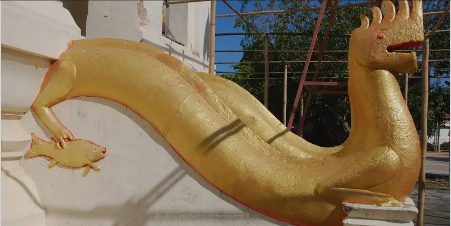 ภาพที่แชร์กันเป็น รูปปั้นมกร ที่วัดกลาง เขมราษฎร์ รูปปั้นเต็มๆ ที่ขาหลังจะคีบปลาไว้ด้วย สาเหตุที่เรียกตัวนี้ว่า “มกร” ก็เพราะว่า เป็นสัตว์ประจำราศีมกร ( มังกร ) แบบไทยๆ เป็น งานศิลปะตามวัดแบบนี้ เขาเรียกว่า naive art ซึ่งเกิดจากชาวบ้านทำสิ่งเหล่านี้ขึ้นด้วยศรัทธา แต่ไม่ได้ชำนาญด้านศิลปะ ปั้นรูปหล่อพระใดๆ ตามความเข้าใจ เลยออกมาเป็นน้องตะมุตะมิแบบนี้นั่นเอ้งงงง