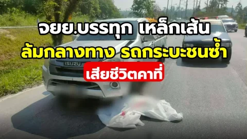 สลด! จยย.ลุงแบกเหล็กเส้น เสียหลักล้ม กระบะชนทับดับสยอง