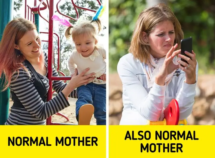 หลายคนเชื่อว่าแม่ที่ดีควรเฝ้าดูลูกที่สนามเด็กเล่นแทนที่จะดูโทรศัพท์ ฉันบอกเลยวาาฉันไม่สมบูรณ์แบบและมักจะเสียสมาธิกับโทรศัพท์ขณะที่ลูกชายกำลังเล่นกับเพื่อน ๆ ของเขา ฉันเดาว่าคนคงจะตำหนิฉันควรจะละอายใจกับเรื่องนี้ แต่ฉันไม่ ประการแรกเด็กอายุ 5 ขวบไม่ต้องการความสนใจมากเท่ากับทารกและอย่างที่สองแม่สมัยใหม่มีเหตุผลสำคัญมากมายที่จะต้องใช้โทรศัพท์