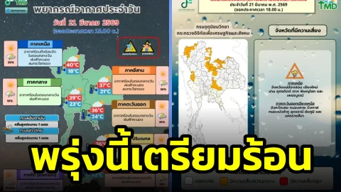 เตรียมรับมืออากาศแปรปรวน! พรุ่งนี้ร้อนจัดทะลุ 40 องศา พร้อมเฝ้าระวังพายุฝนฟ้าคะนอง 24 จังหวัด