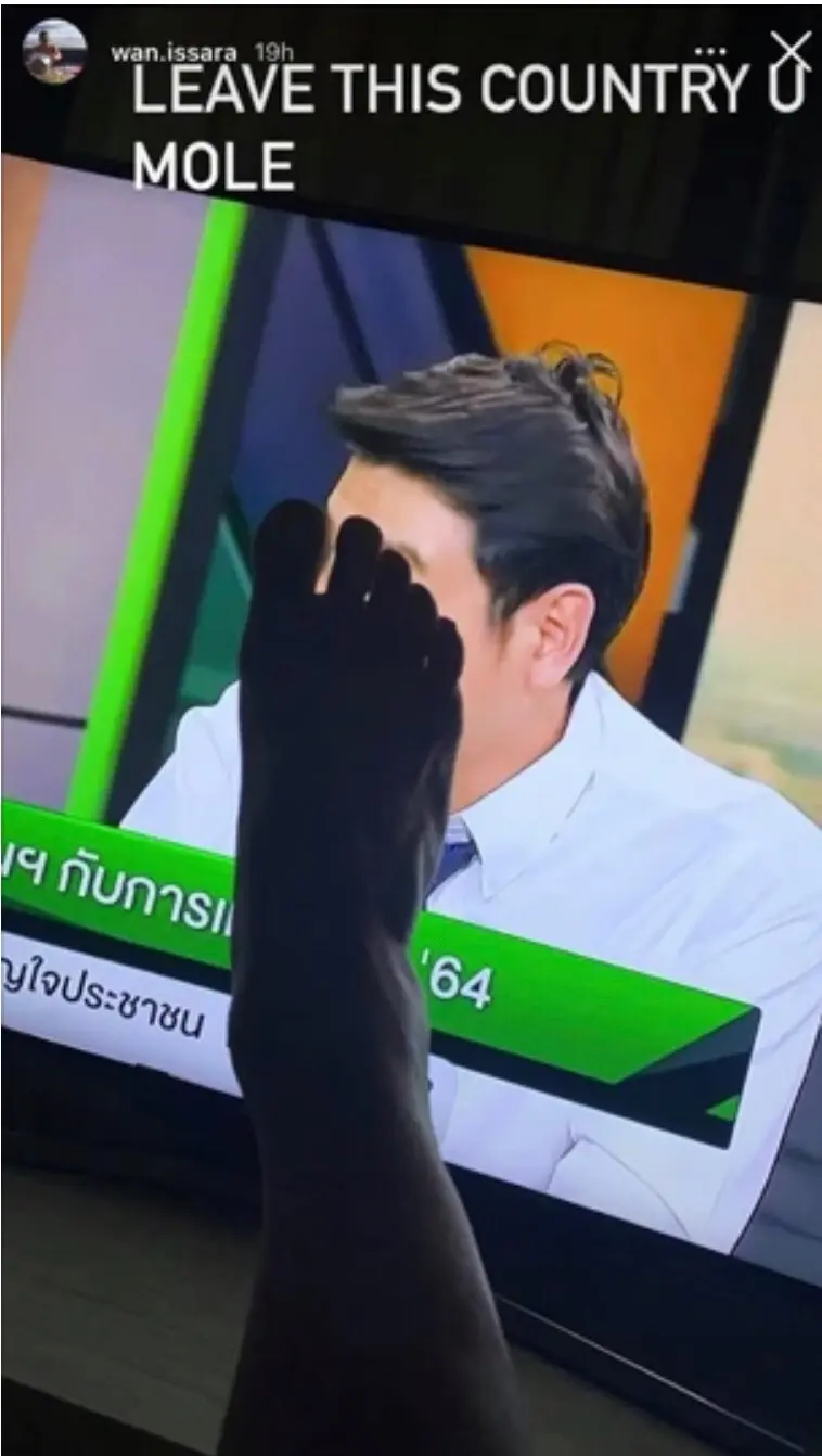 ไฮโว ปลาวาฬ หรือ วรสิทธิ์ อิสสระ เจ้าของธุรกิจอสังหาริมทรัพย์ศรีพันวา จ.ภูเก็ต สุดเดือด โพสต์ไอจีสตอรี เอาเท้าจ่อหน้านายปิยบุตร แสงกนกกุล แกนนำคณะก้าวหน้า ผ่านหน้าจอทีวี ขณะออกรายการถามตรงๆ กับจอมขวัญ ทางสถานีโทรทัศน์ไทยรัฐทีวี ดำเนินรายการโดย นางจอมขวัญ หลาวเพ็ชร ในหัวข้อ “สถาบันฯ กับการเมืองไทย 64” มีเนื้อหาวิพากษ์วิจารณ์สถาบันพระมหากษัตริย์ นายวรสิทธิ์ ถึงกับได้ใช้เท้าแตะที่หน้าจอทีวีพร้อมข้อความว่า “LEAVE THIS COUNTRY U MOLE”